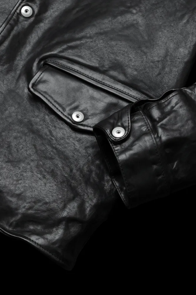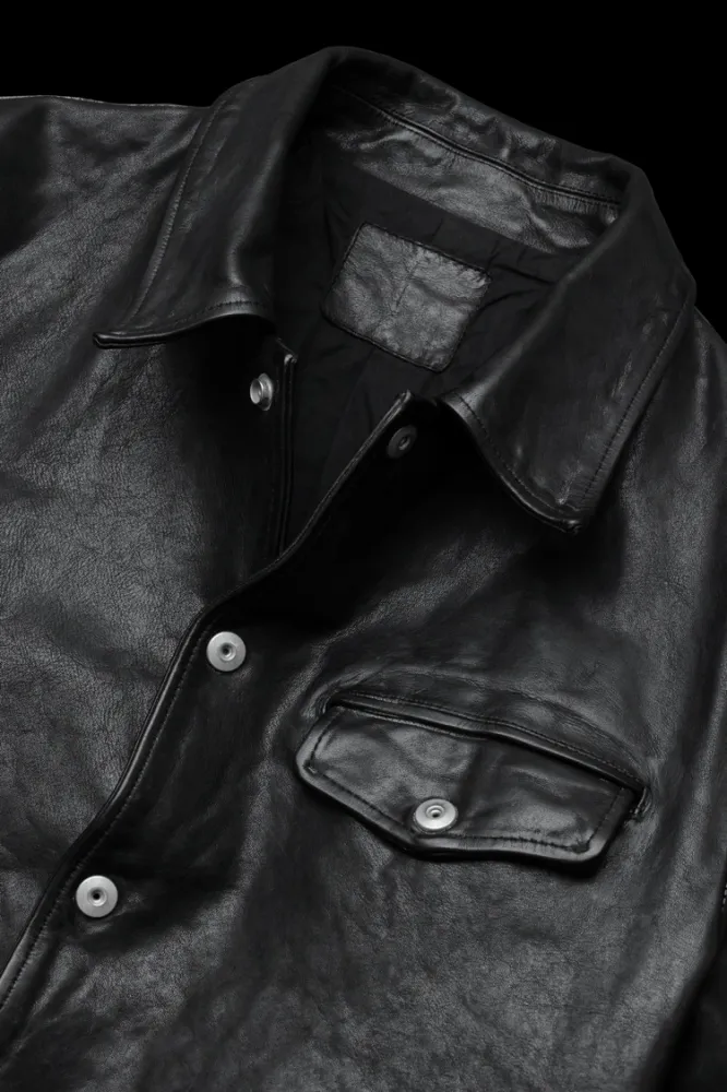 This new car coat is designed with a moderately loose fit based on a coat, with a modified jacket length for a bodyline. The design features no horizontal seams, allowing the leather’s texture to be displayed in a straightforward manner, and features dot-hook buttons on the front and cuffs, as well as a flap pocket at the waist and on the left chest, all of which express the brand’s original image.