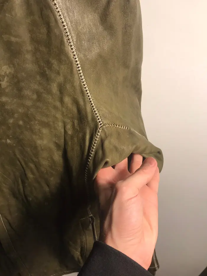 Army green object dyed leather jacket
