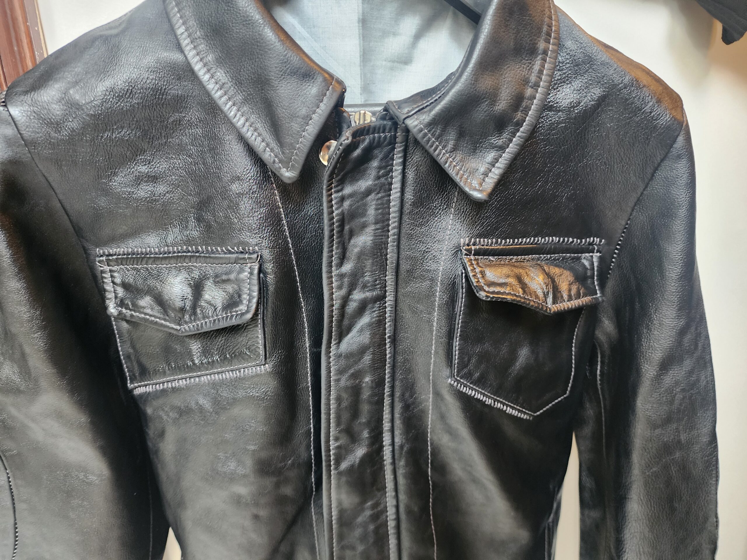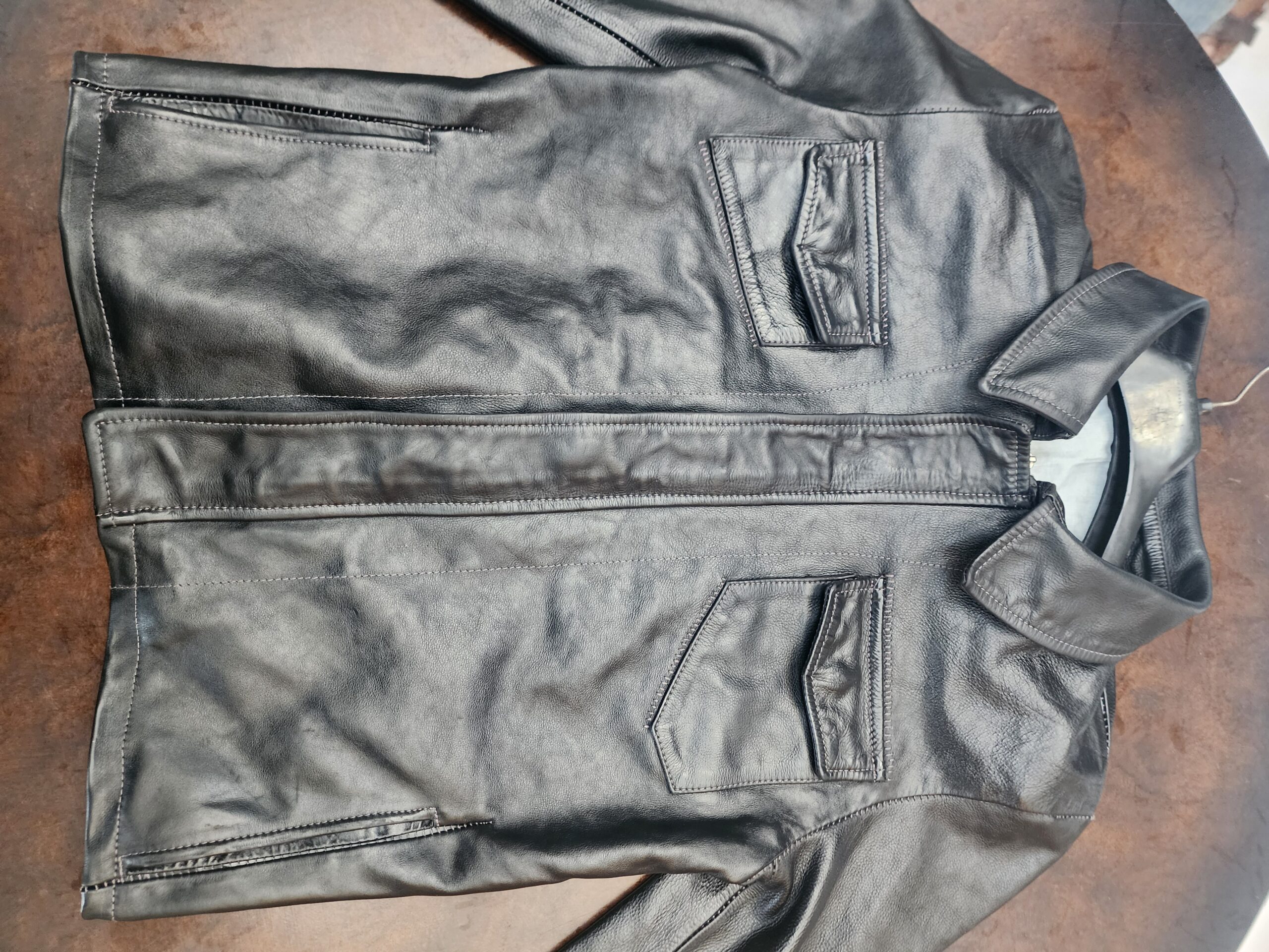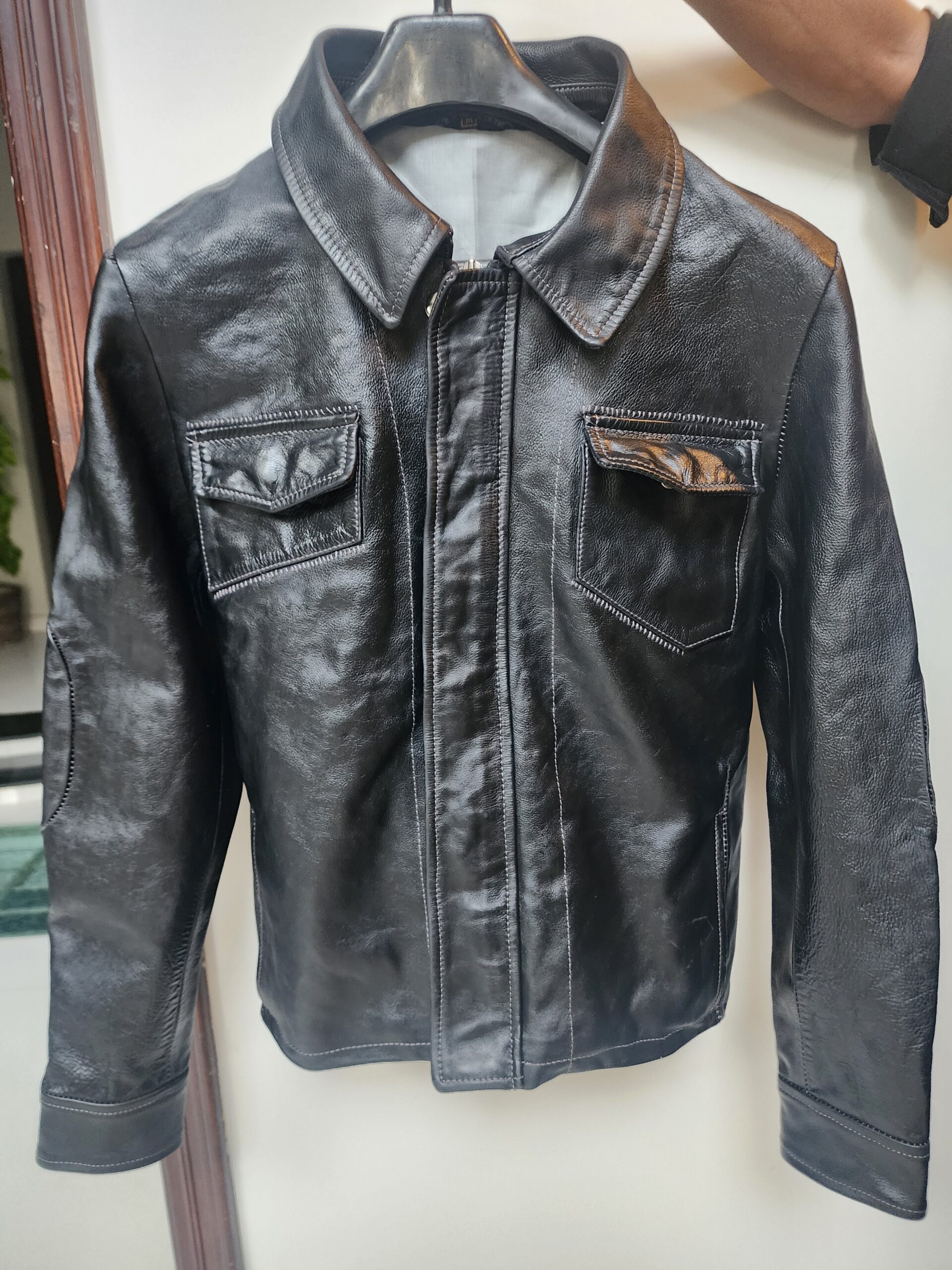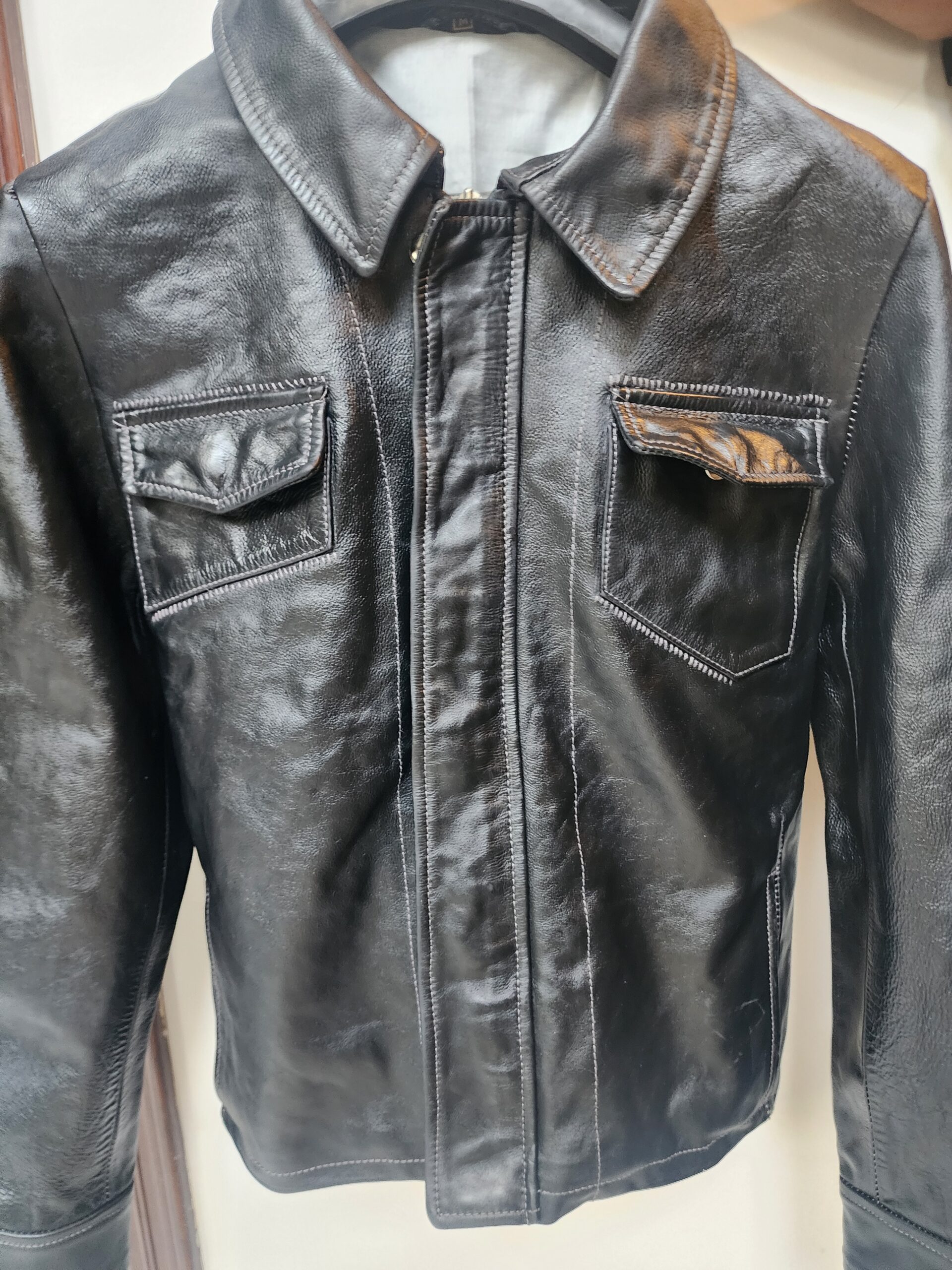 ITEM NO: CCP Leather jacket w.white top stitch
