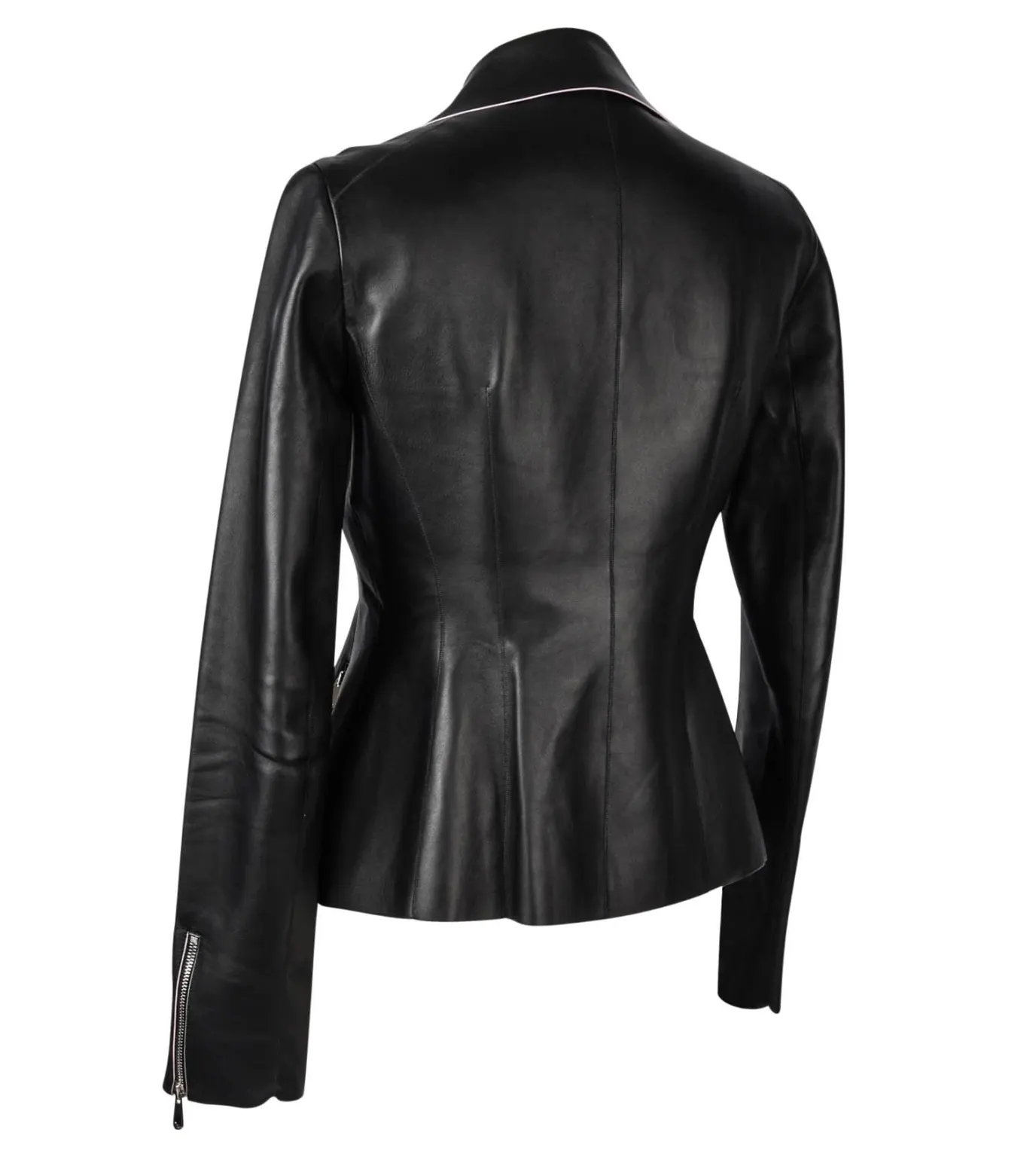 2 zip pockets and zips at cuffs. All pulls are embossed.