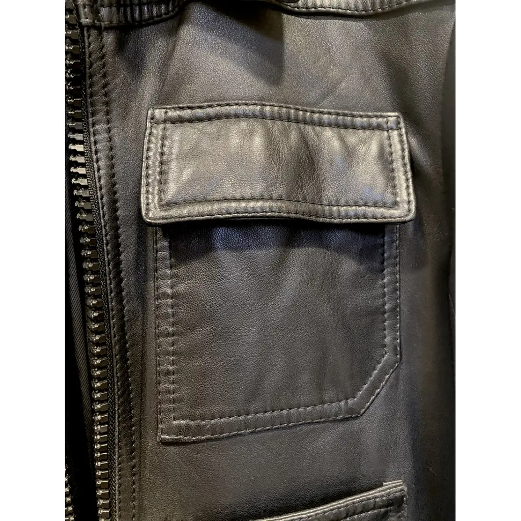 ss2007 “4 pocket” leather jacket. A rare piece from Hedi Slimane’s Dior Homme. Tag size 44 (XS). Spring/summer 2007 collection. Black leather with ribbed trim on cuffs. Signature darts on rear shoulder. Black zipper with “Dior Homme” engraved logo and leather pull tab. Made from an extremely soft leather, very high quality