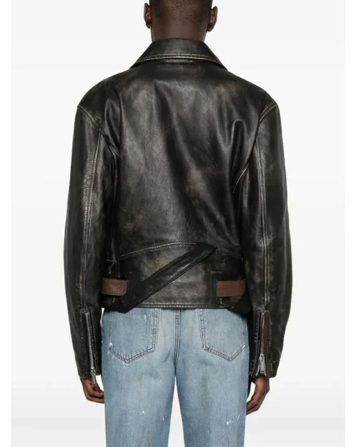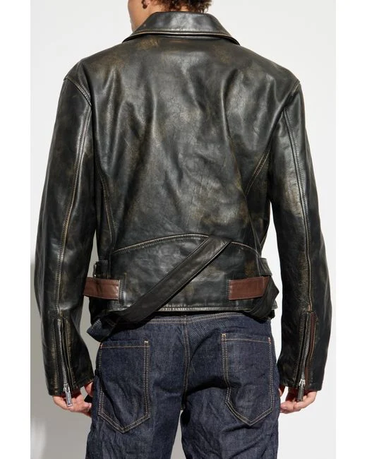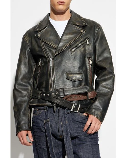 Black calf leather zip fastening belted waist zip pockets silver-tone hardware. Gender: Male. Material:Calf Leather antique finish/Viscose.