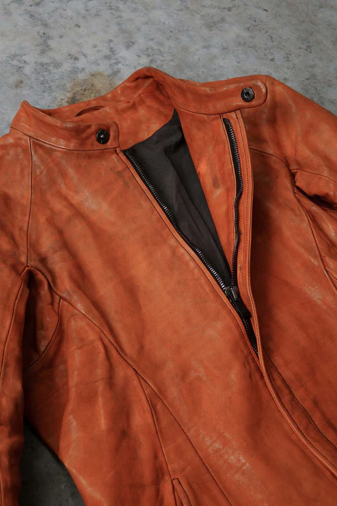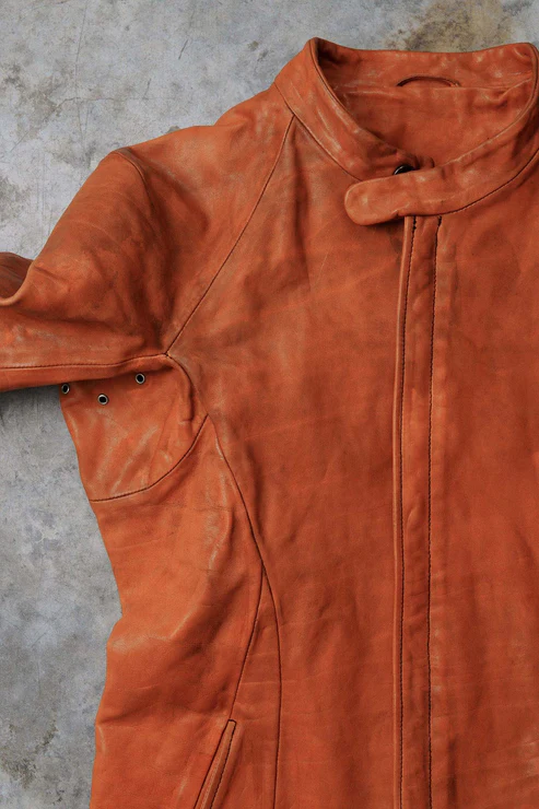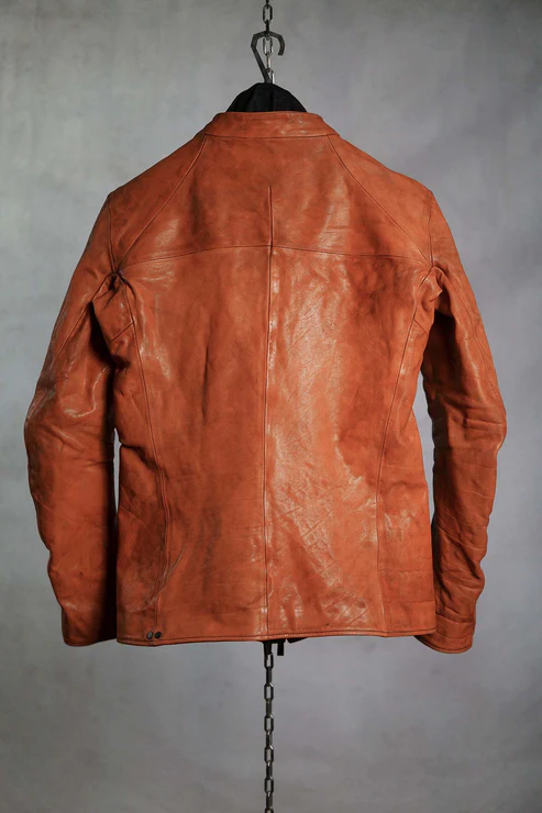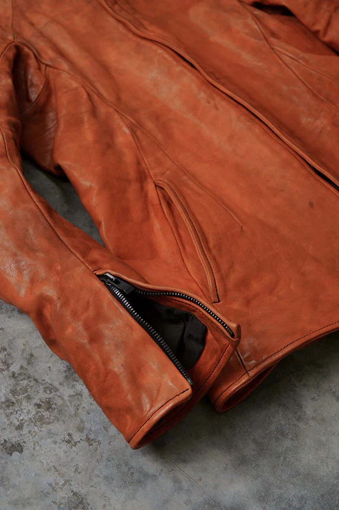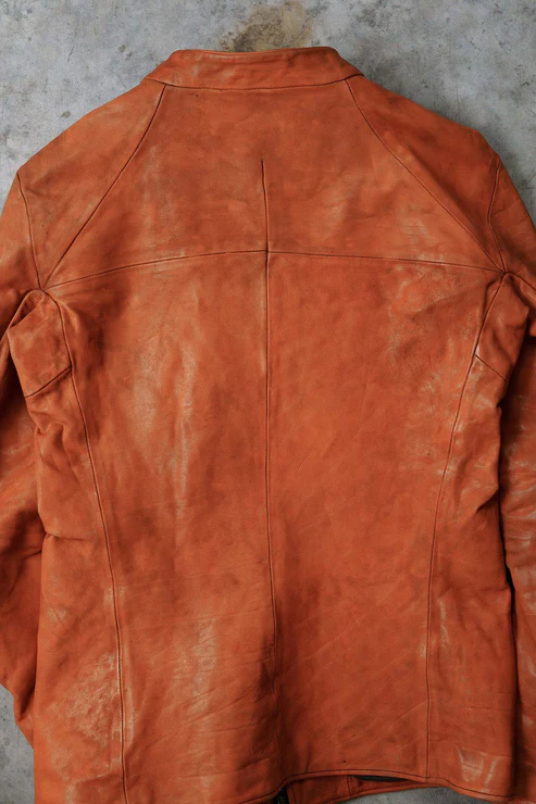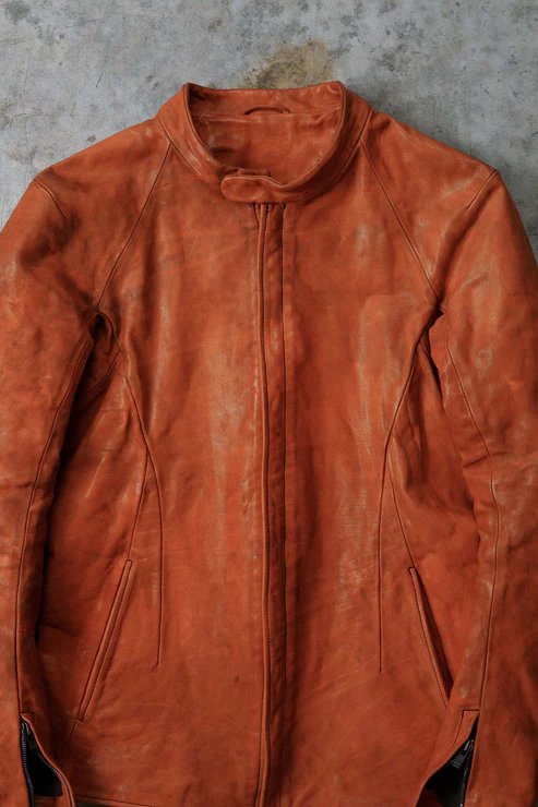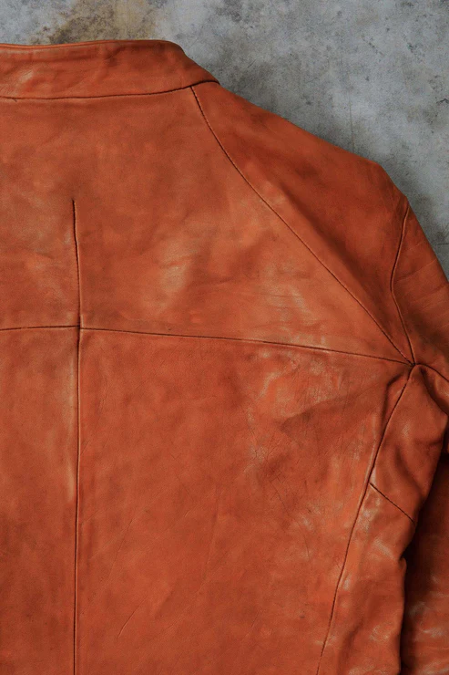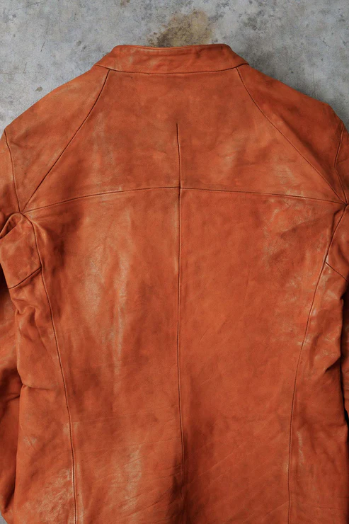 After the piece dyeing process, there is the lengthy natural drying of the products. Meanwhile, we hand correct the size. Then we oil and polish them when they are completely dry. All these processes are performed inhouse and by hand.