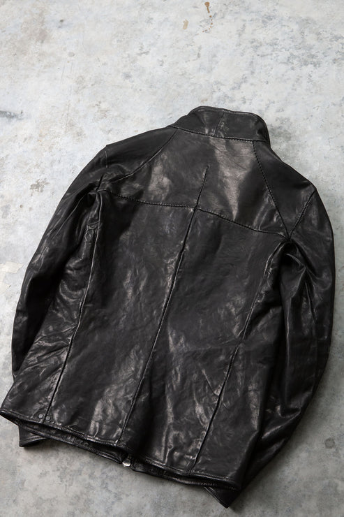Compared to other leathers, horse leather shrinks in an irregular manner. Thus we determine a suitable area for cutting out each part of the product taking this into account.