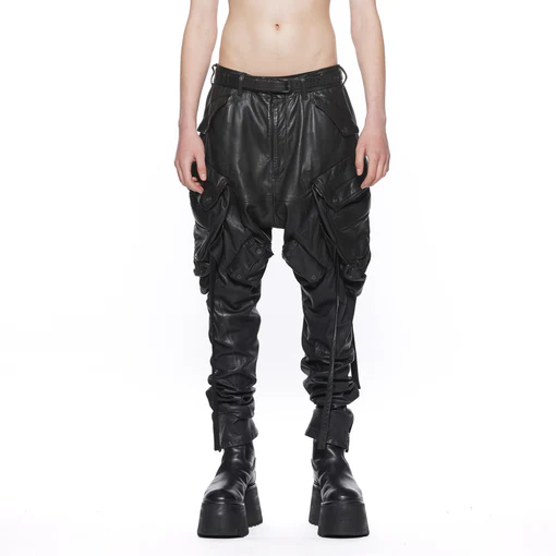 Made of cowhide leather. Soft leather. Gas mask pants. Fitted fit.