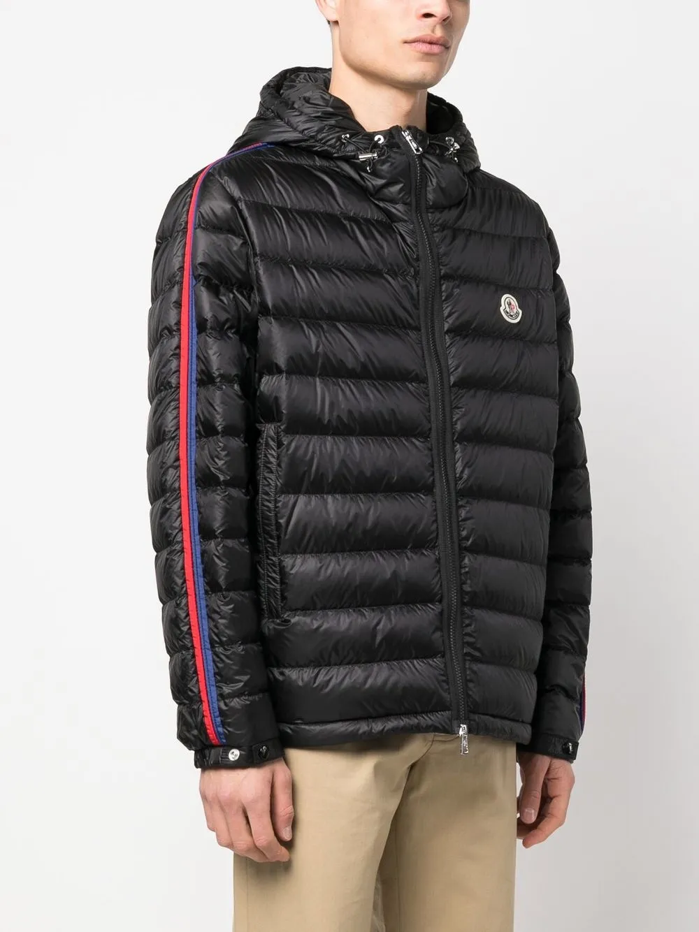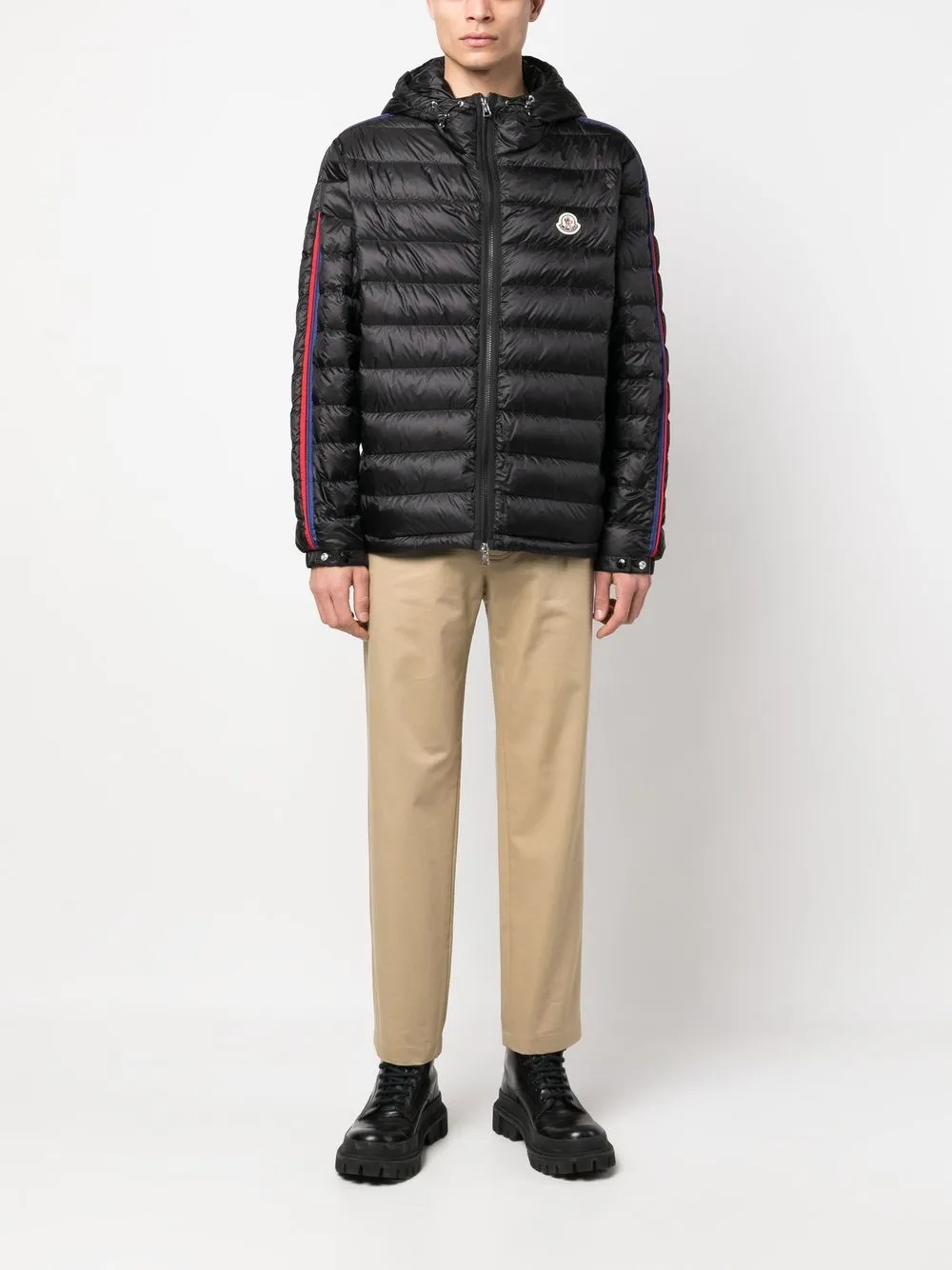 A classic silhouette of Moncler’s, the Agout jacket is defined by its weatherproof padded down-filled construction. Presented in a timeless black hue, the zip-up silhouette is adorned with a red stripe on the sleeve, as well as their iconic logo on the chest.