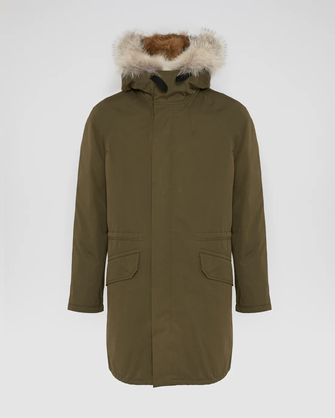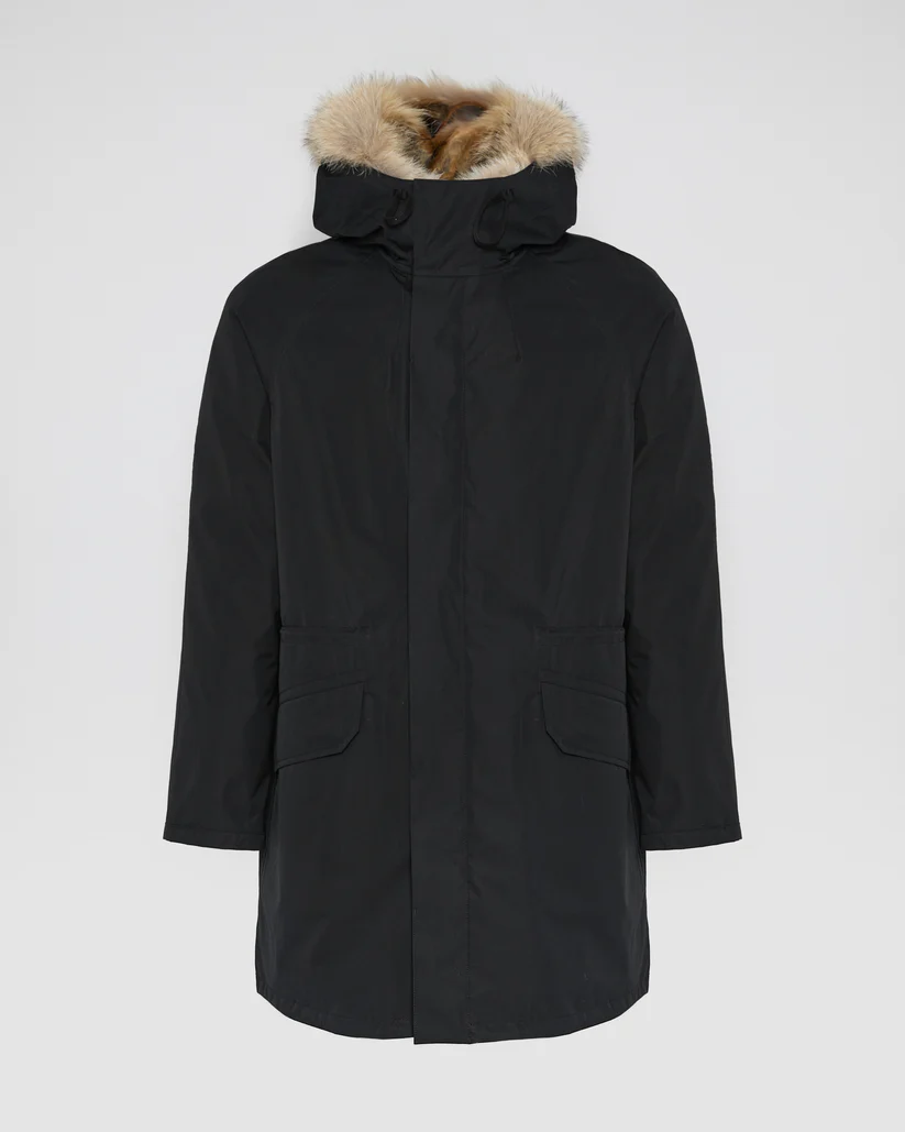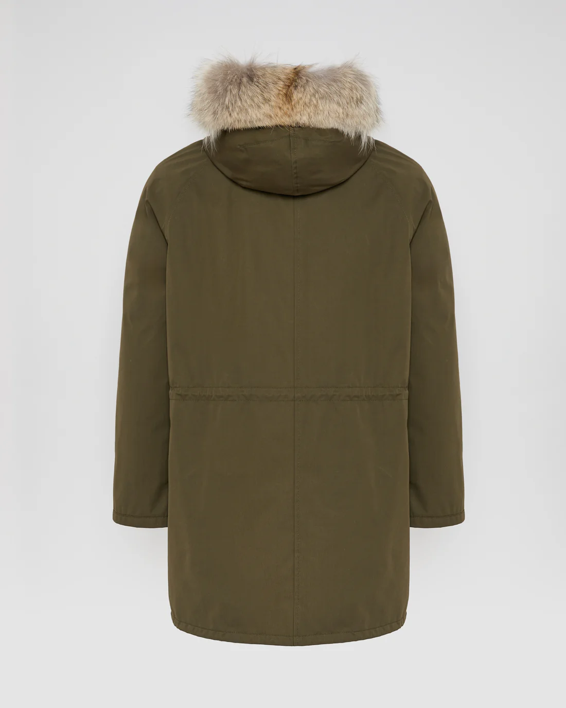 – Parka in weather-resistant technical cotton (waterproof and windproof)