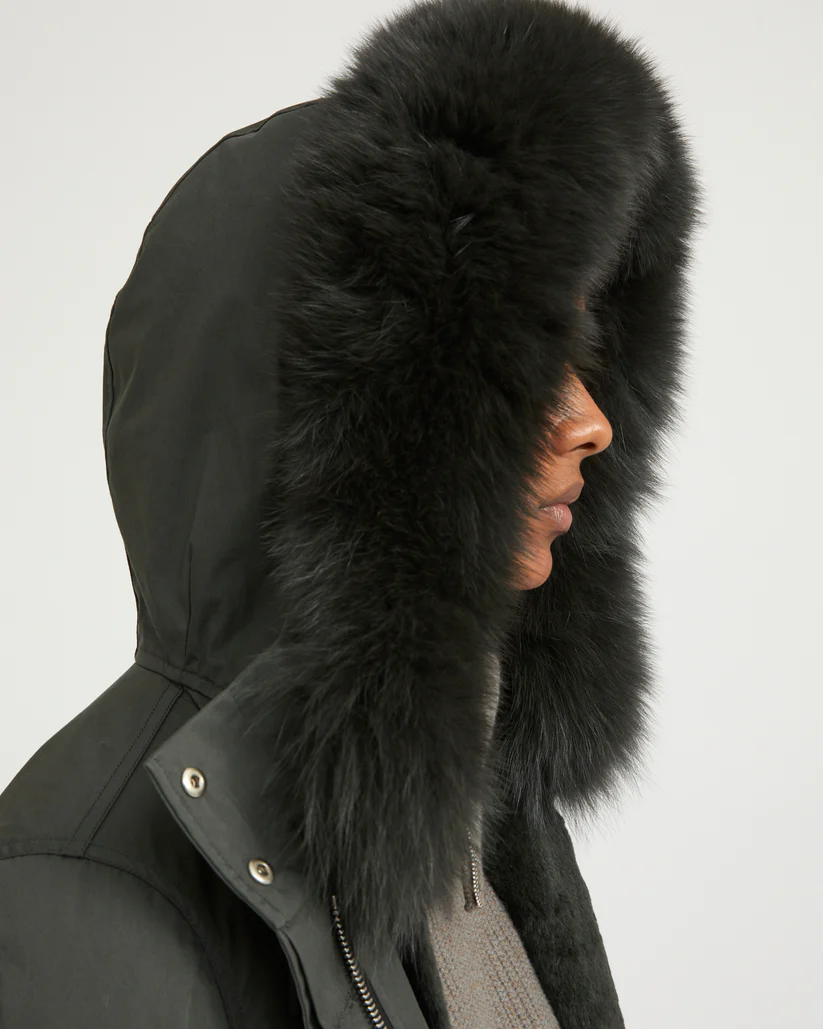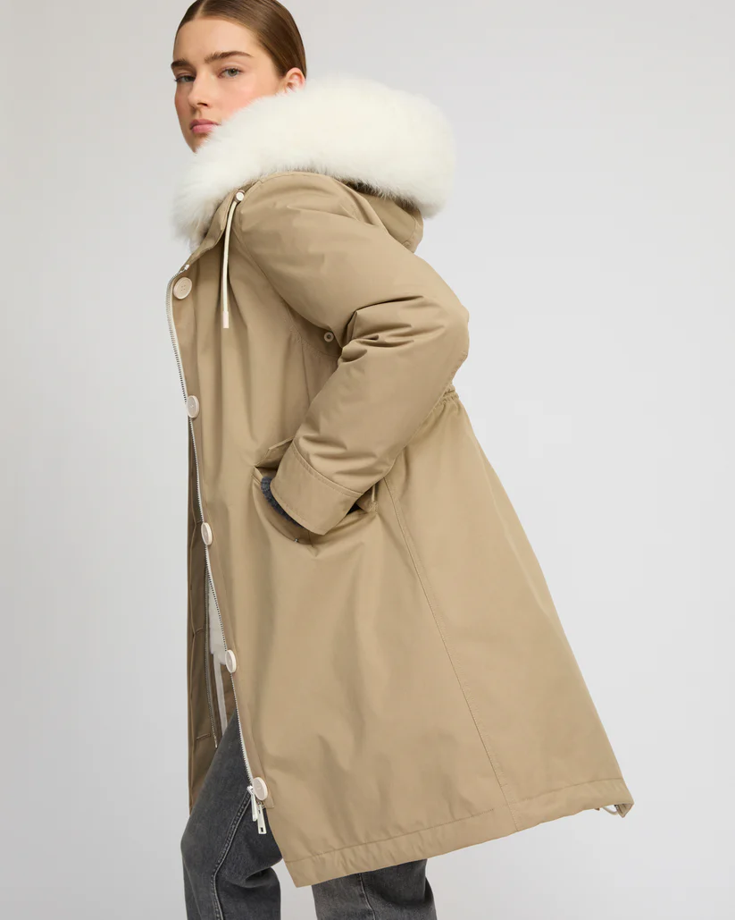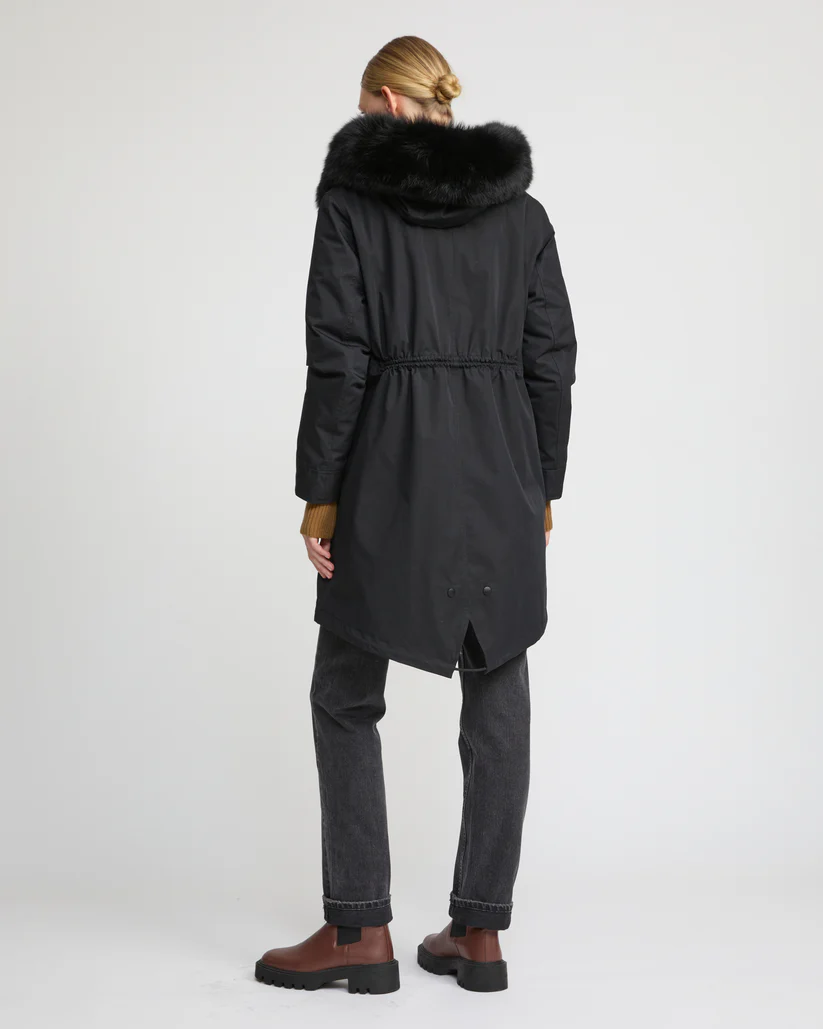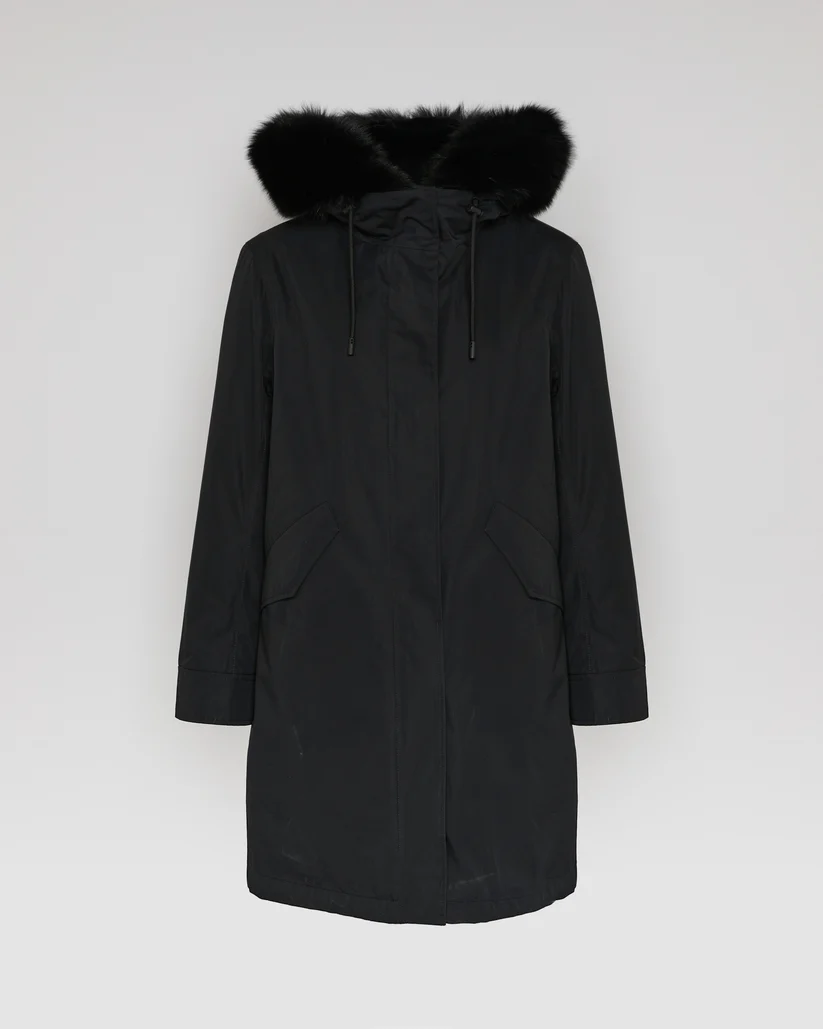 – Removable hood trim in fox fur