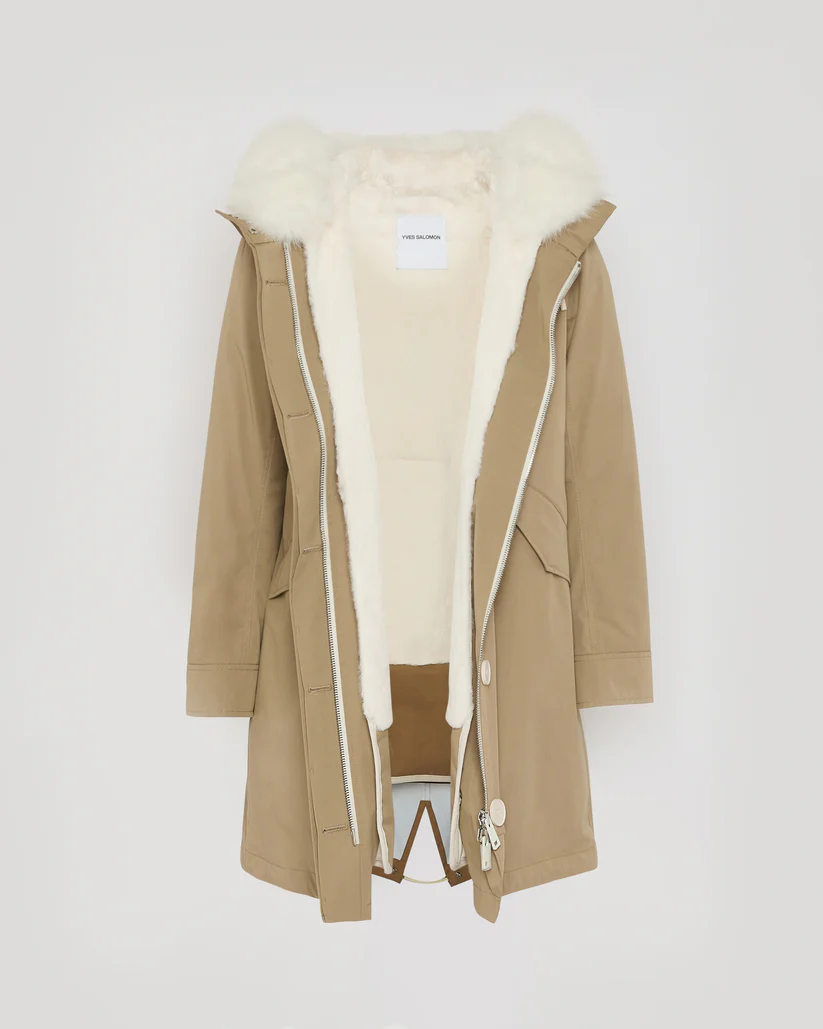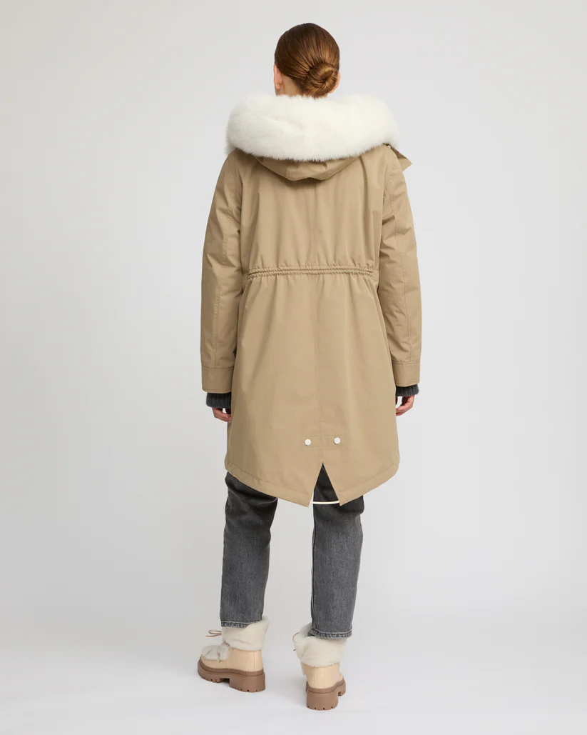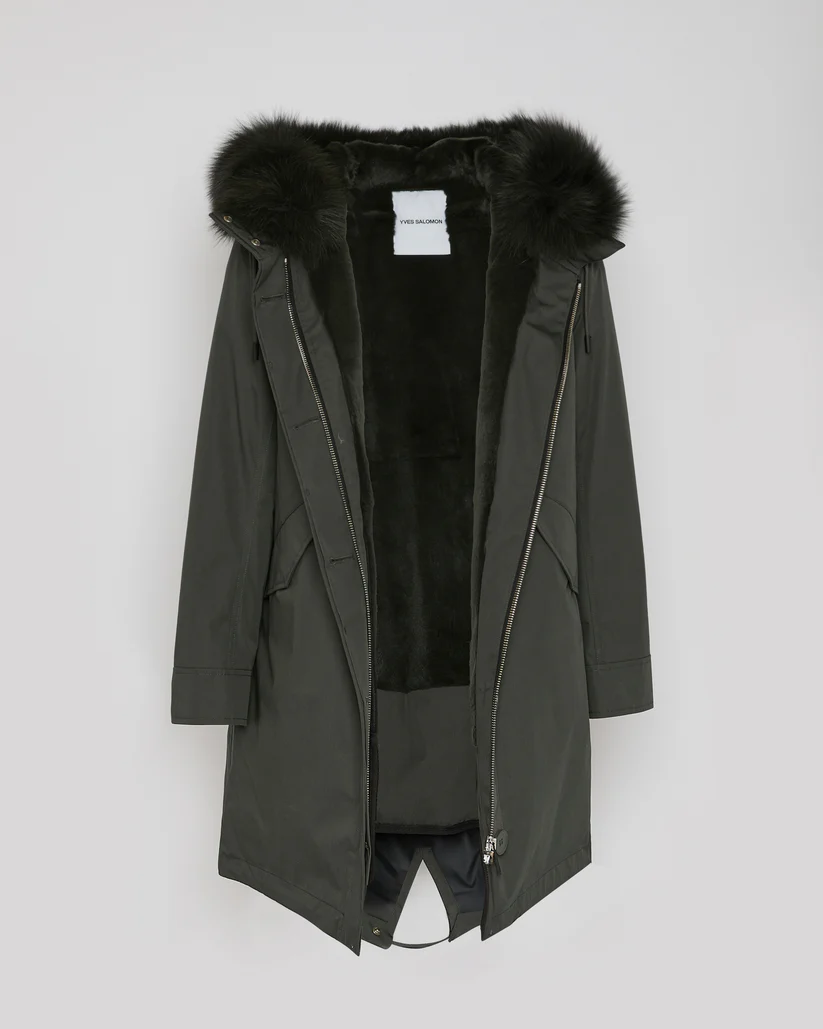 Yves Solomon Long Iconic parka in waterproof cotton blend with fox and rabbit fur