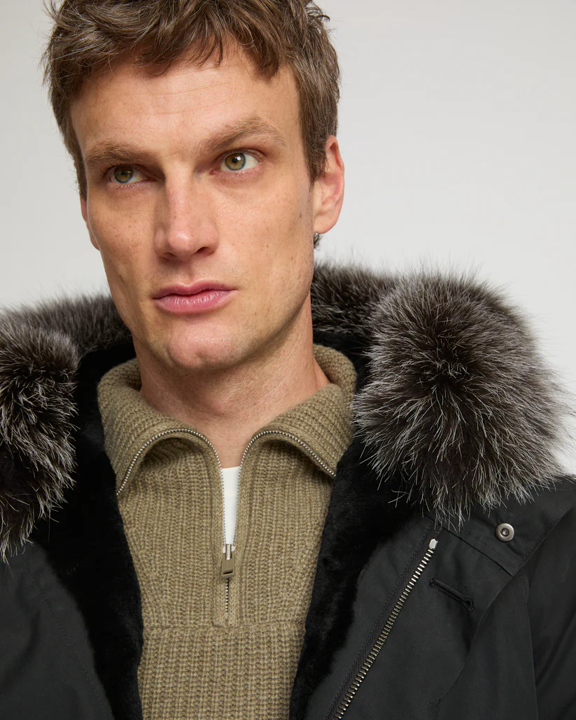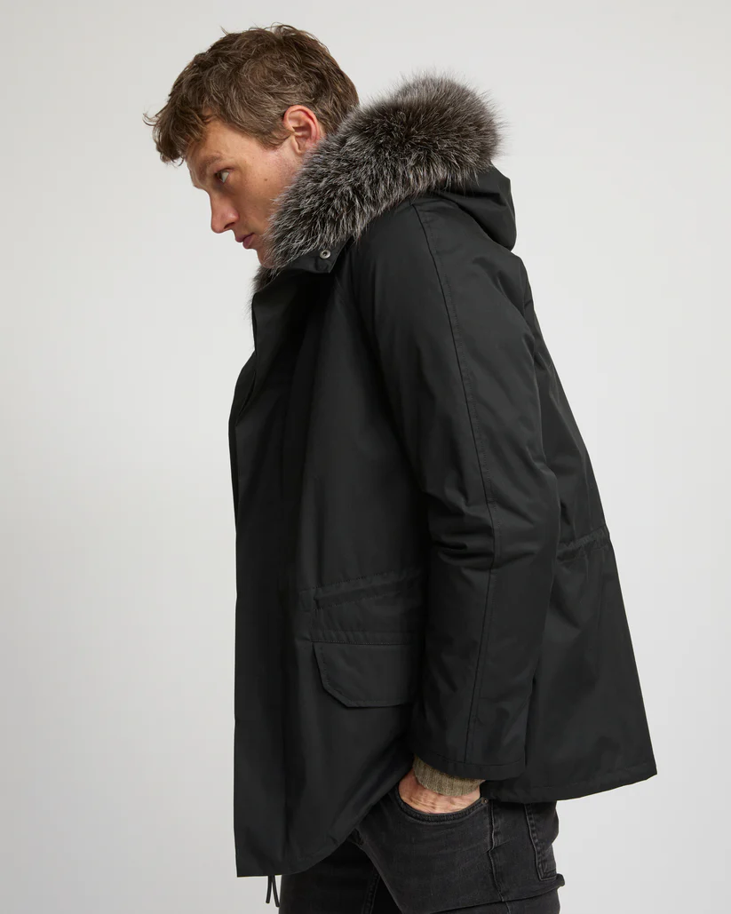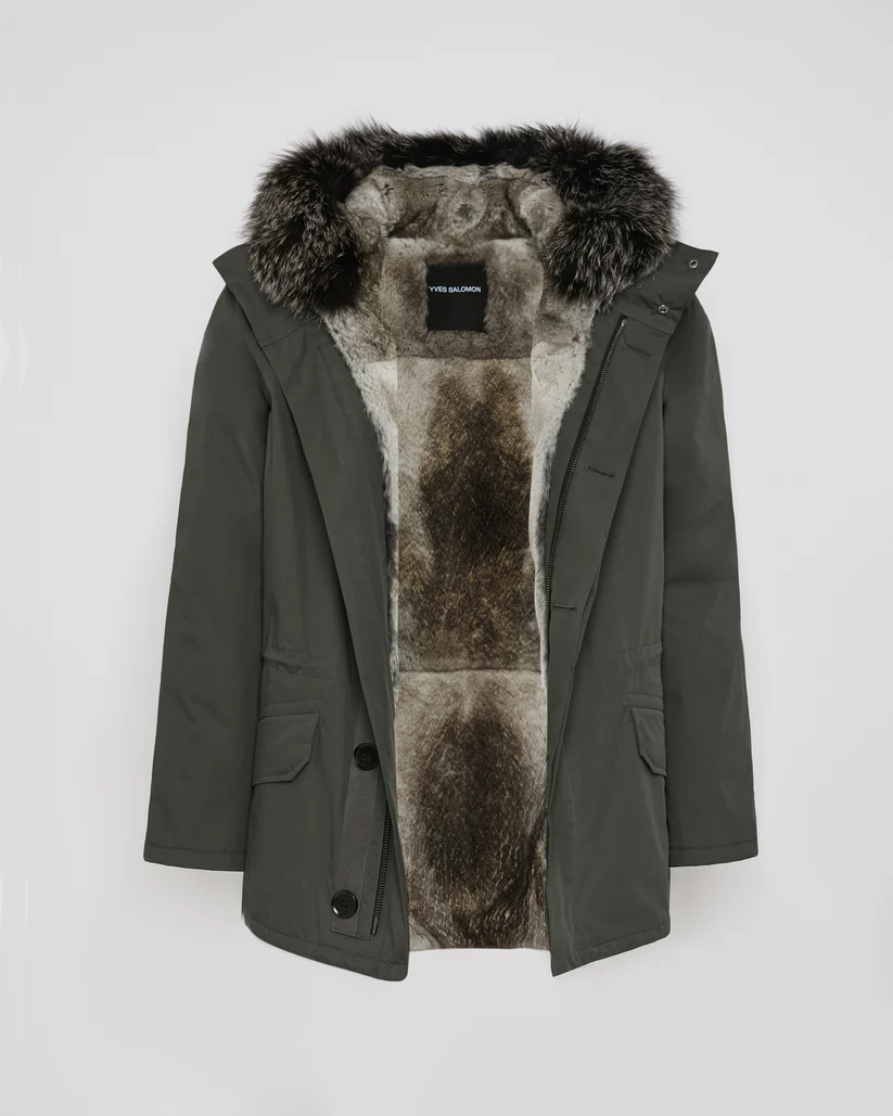 Yves solomon Short Iconic Parka In waterproof Cotton Blend with Fox Fur and Rabbit Fur